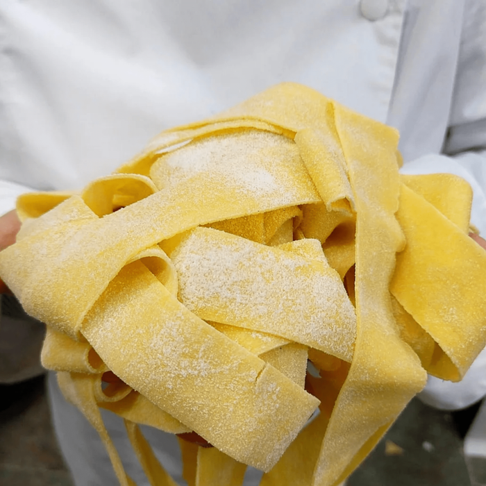 Utilitzem sèmola de la Puglia d'alta proteïna i ou de proximitat per garantir un producte d'autor excel·lent.